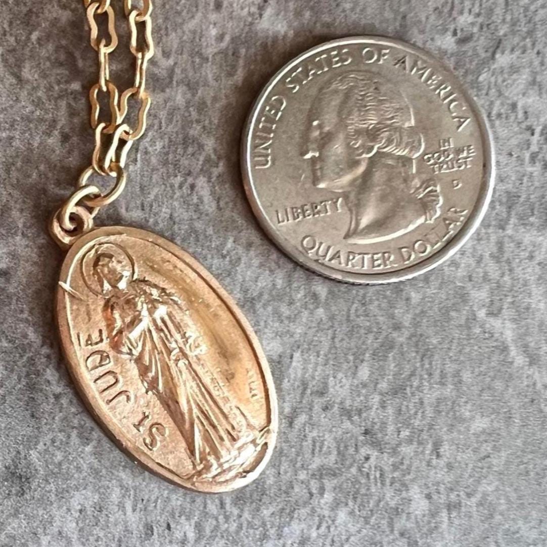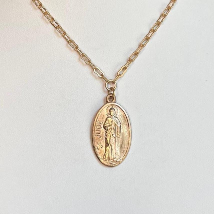 Classic oval St Jude of Thaddeus antique replica medal on a medium peanut link chain with Lobster claw closure.