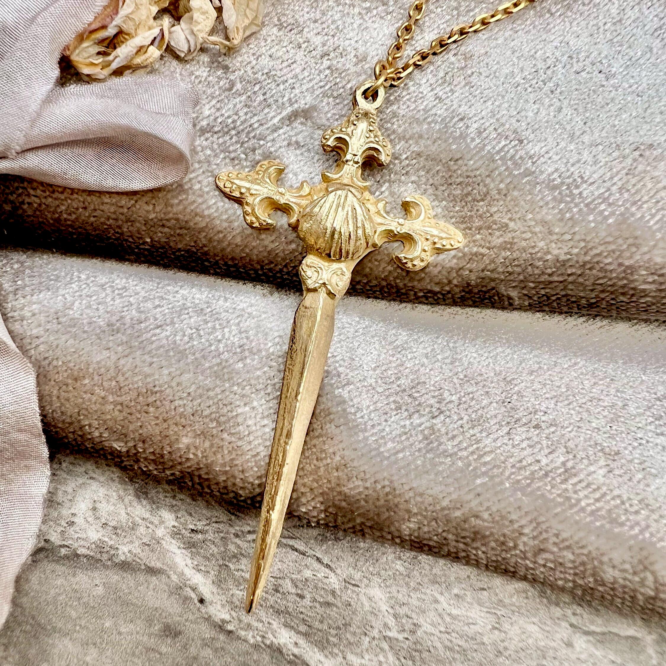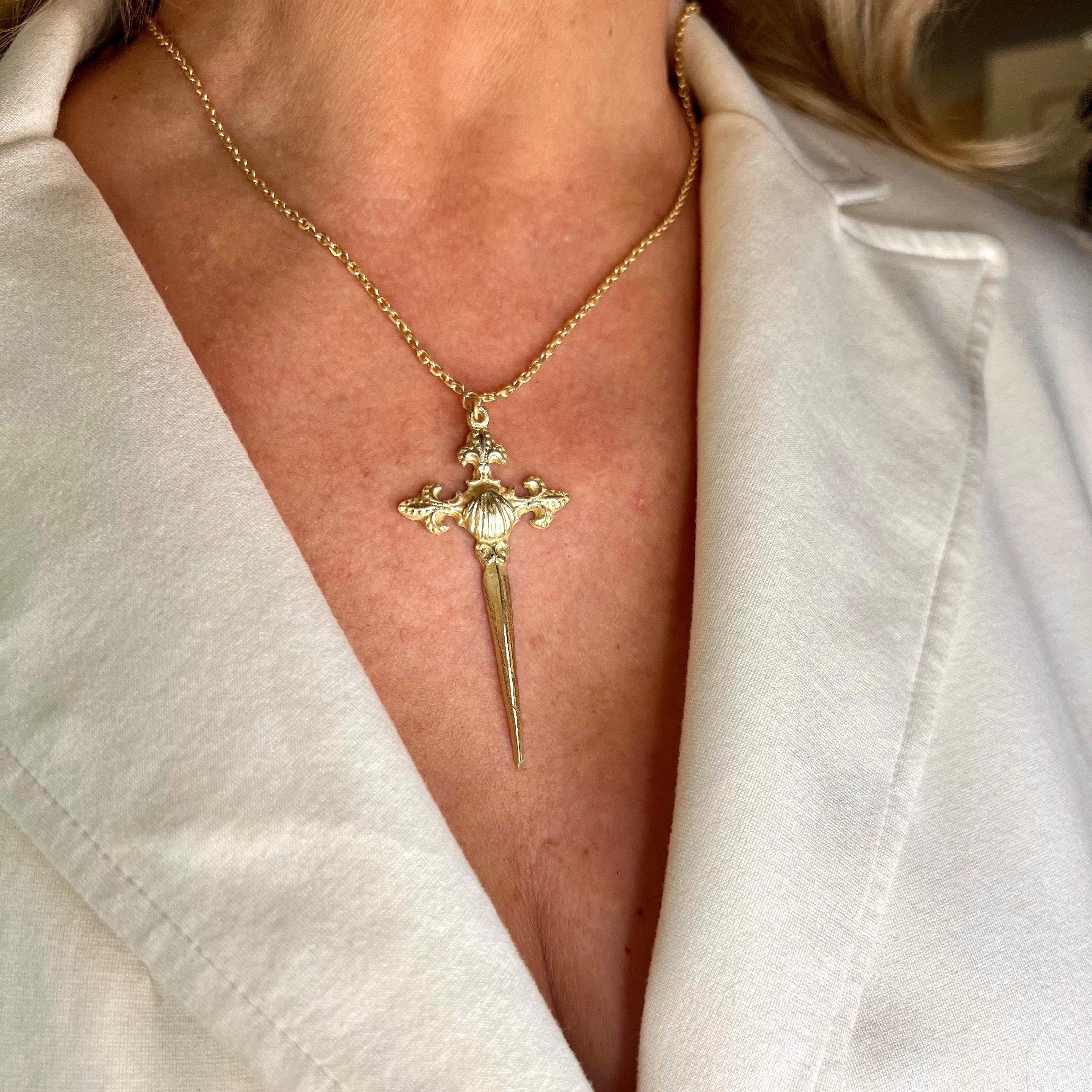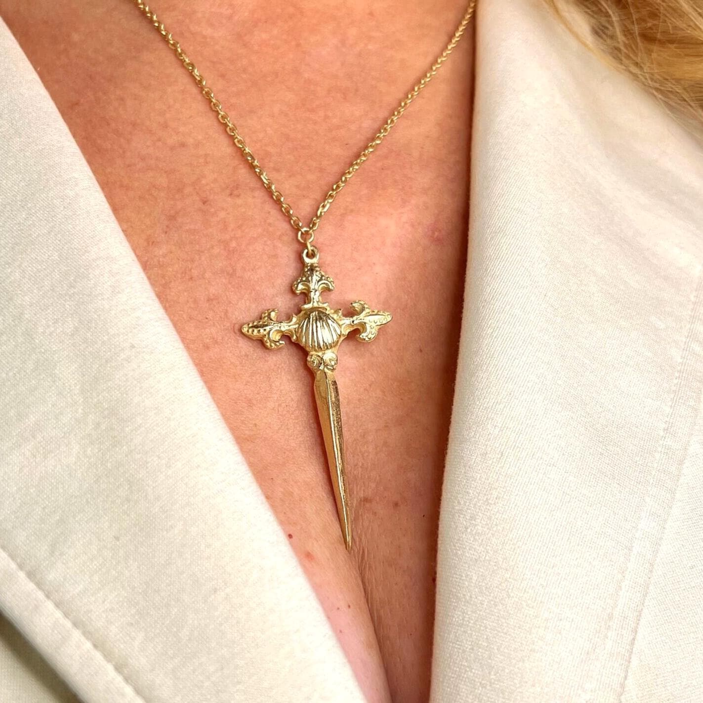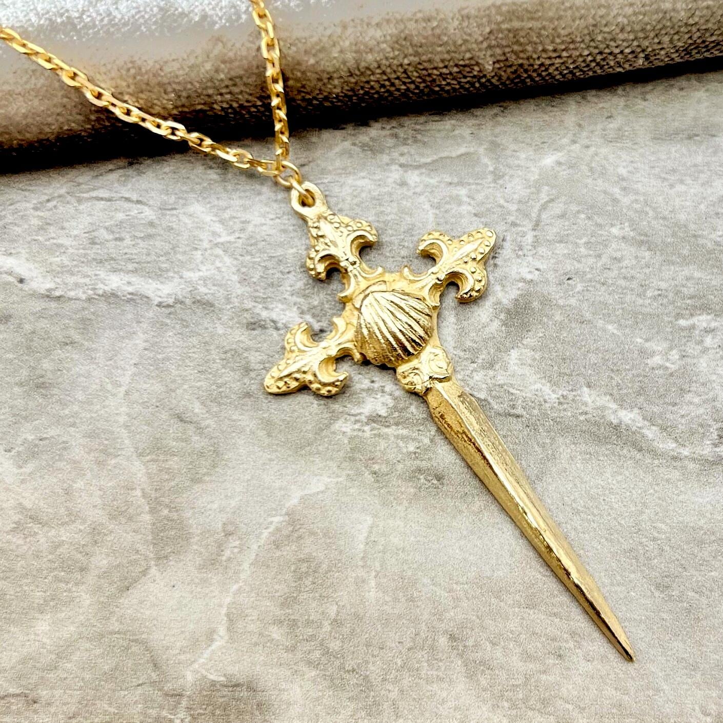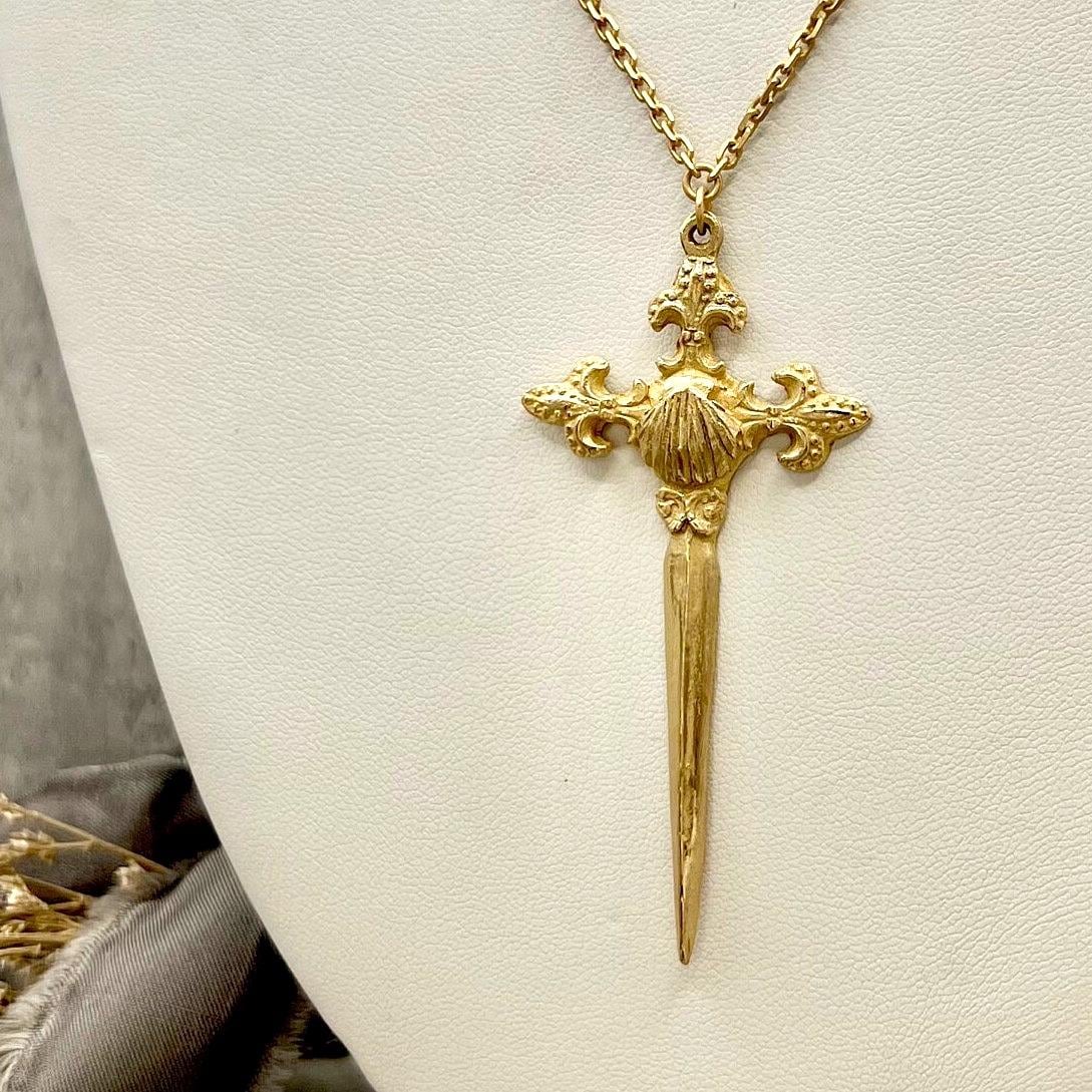 This Camino de Santiago Cross Necklace is an exclusive design created to honor the pilgrimage that many still follow its routes as a form of spiritual path or retreat for their spiritual growth in Northern Spain. Also known as The Saint James Way, this Cross has a dagger or sword detail with Fleur de lis handle and a shell design on the center of the cross. This design was created by special request of a customer who has made this pilgrimage and it left a beautiful footprint on her heart. in my searches for a similar design, I have come to realize that there was a need for a unique piece like this, and it is my hope that many will get to enjoy this special cross. bronze clay French replica was created in my studio from a stunningly large Victorian Miraculous Mary medal from 1896. It hangs from an Art Nouveau link bale attached with two etched jump rings. The chain has alternating links with texture and ridges. The chain is finished with a tarnish resistant coating and wears beautifully. It looks like a very expensive piece and has the same perceived value.
