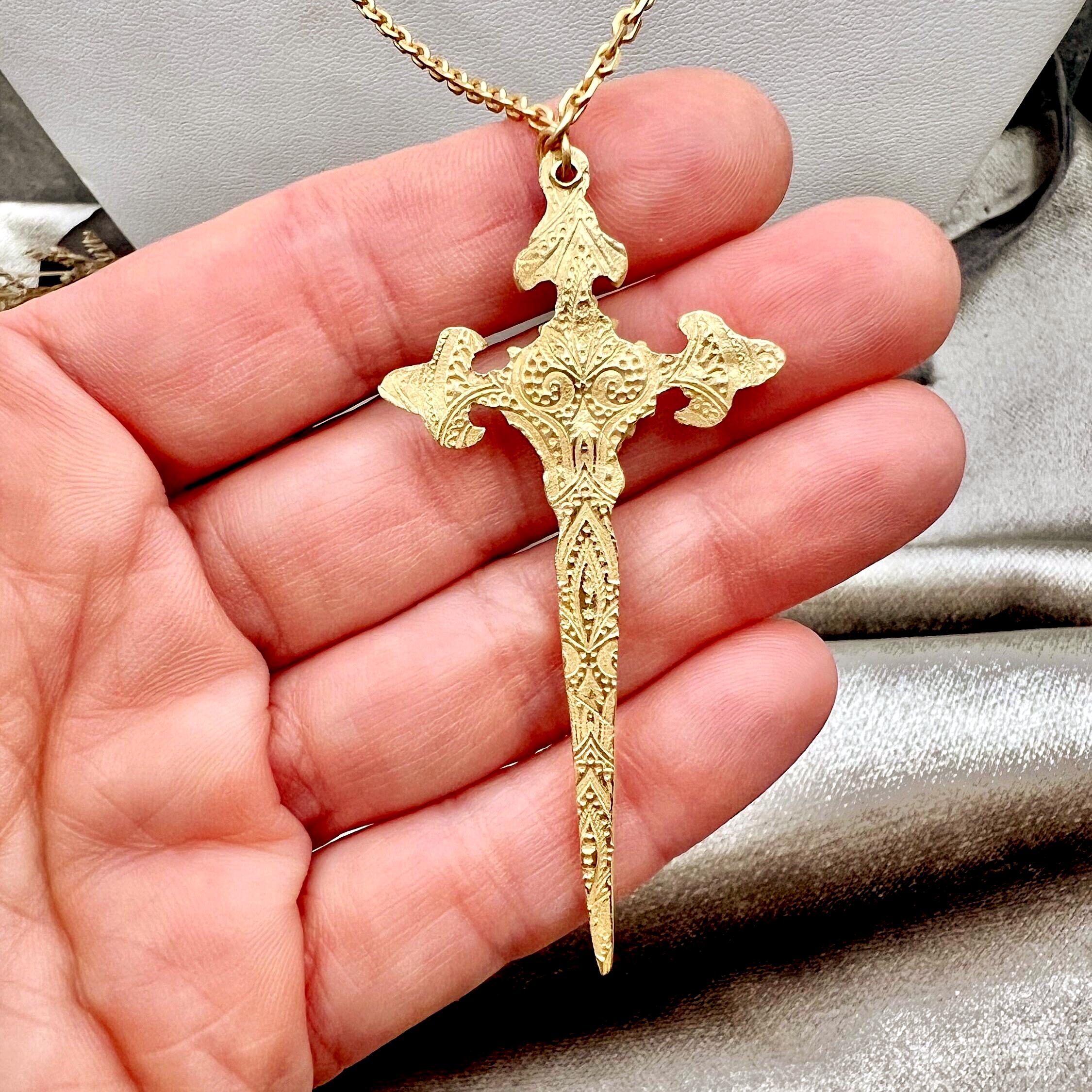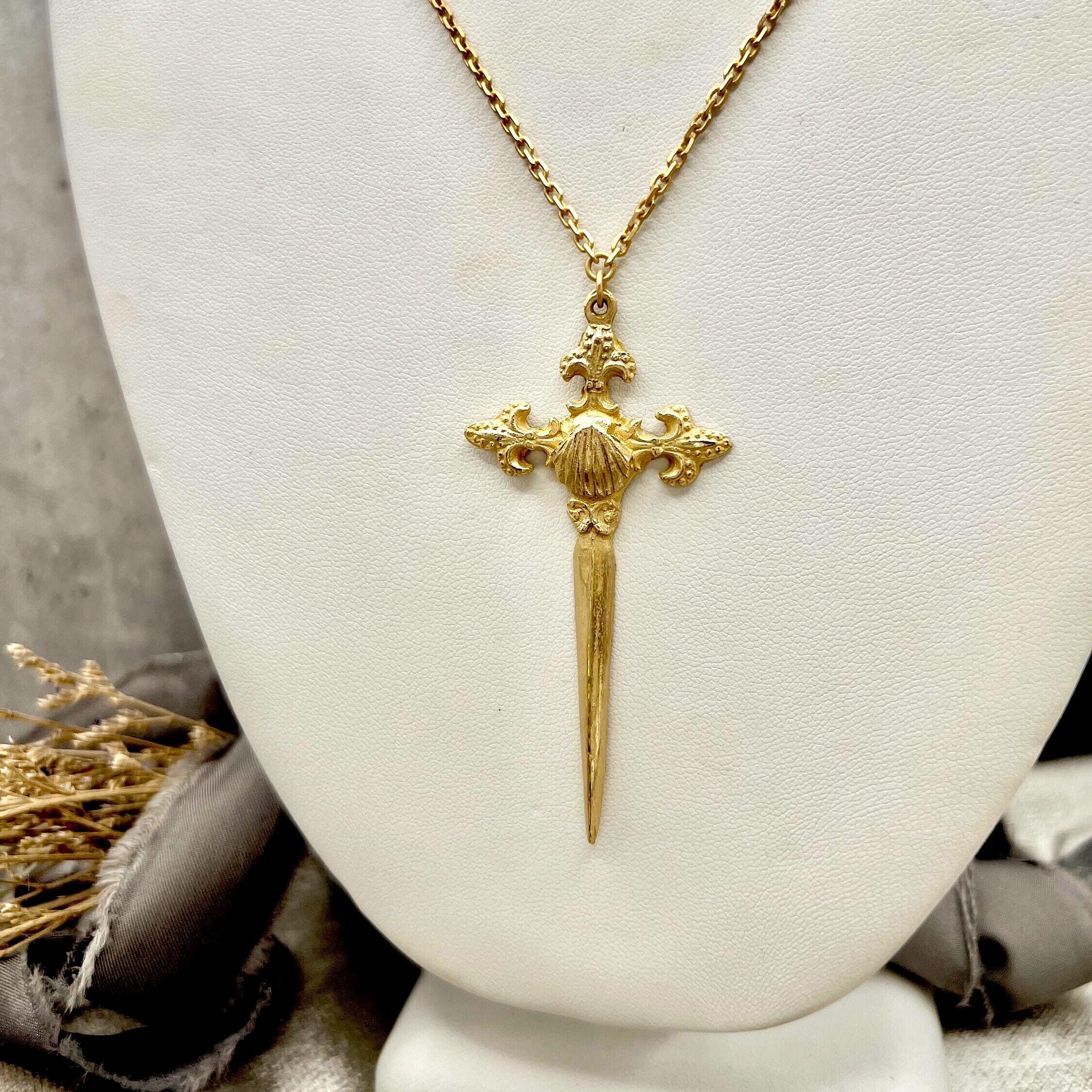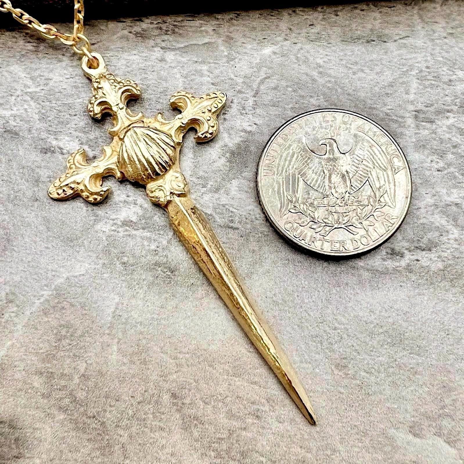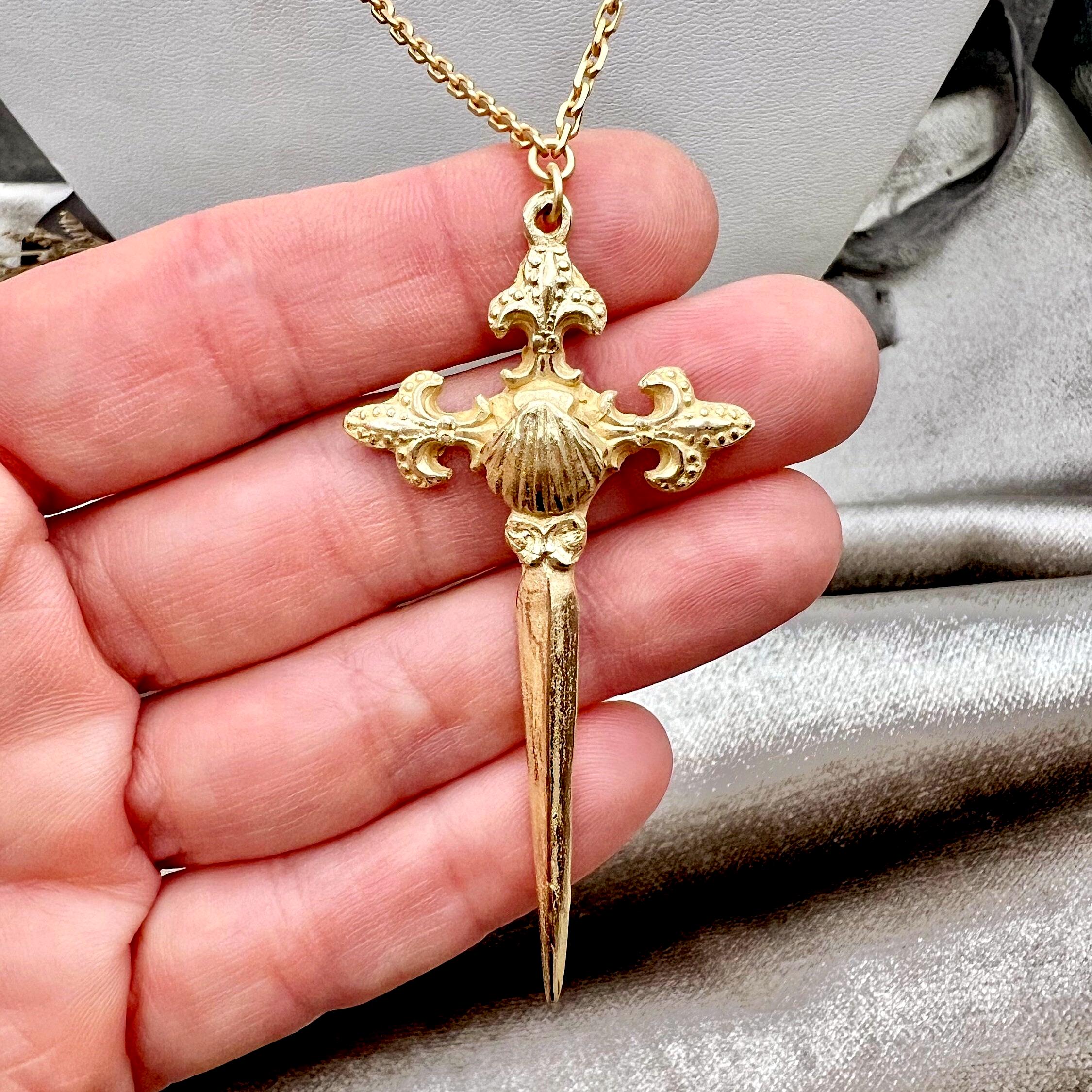 This Camino de Santiago Cross Necklace is an exclusive design created to honor the pilgrimage that many still follow its routes as a form of spiritual path or retreat for their spiritual growth in Northern Spain. Also known as The Saint James Way, this Cross has a dagger or sword detail with Fleur de lis handle and a shell design on the center of the cross. This design was created by special request of a customer who has made this pilgrimage and it left a beautiful footprint on her heart. in my searches for a similar design, I have come to realize that there was a need for a unique piece like this, and it is my hope that many will get to enjoy this special cross. bronze clay French replica was created in my studio from a stunningly large Victorian Miraculous Mary medal from 1896. It hangs from an Art Nouveau link bale attached with two etched jump rings. The chain has alternating links with texture and ridges. The chain is finished with a tarnish resistant coating and wears beautifully. It looks like a very expensive piece and has the same perceived value.