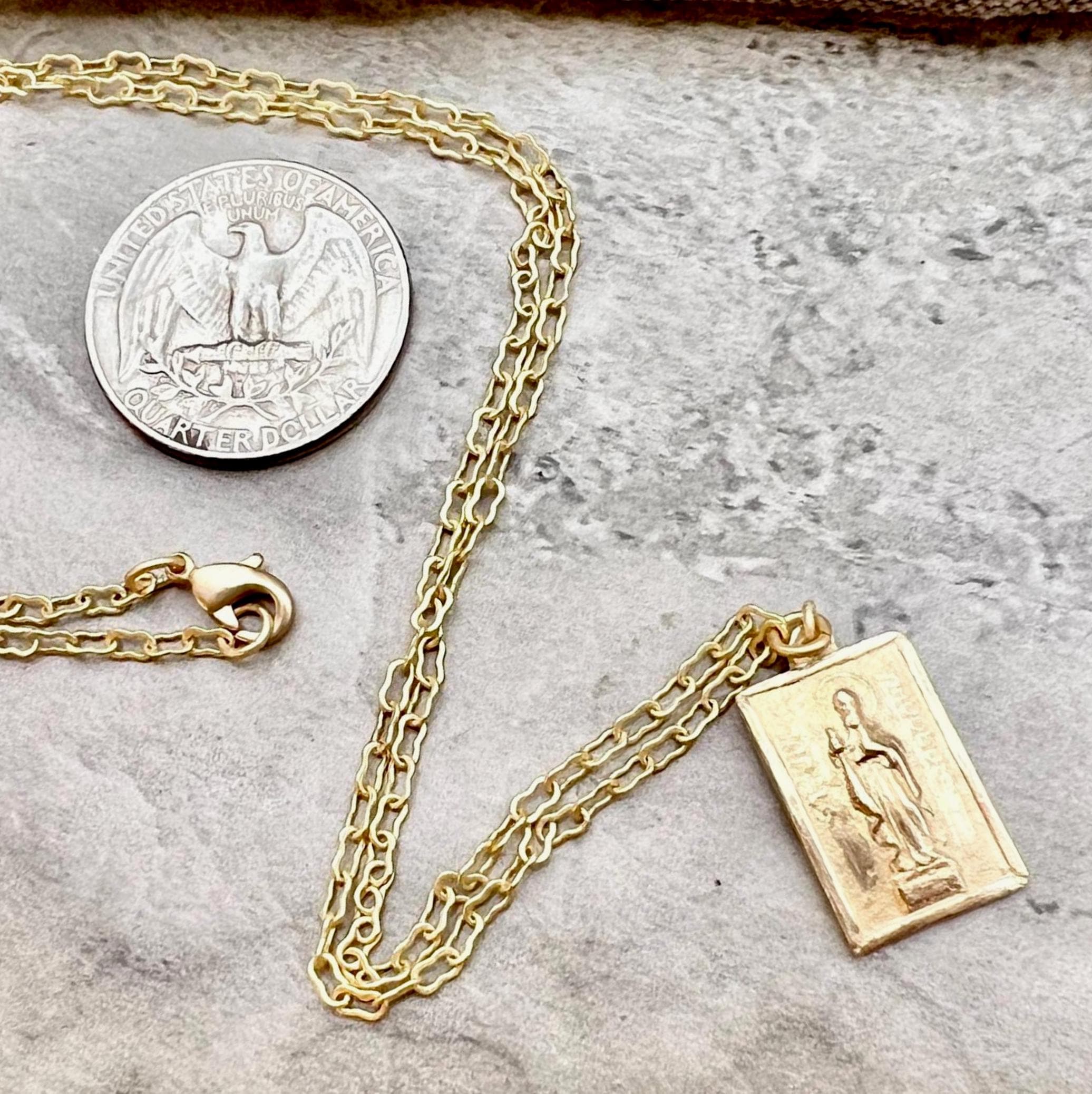 The pendant hangs from an antique-style bronze chain with delicate patterned links and closes securely with a lobster clasp. It’s a meaningful piece with a sense of history and devotion — perfect for those who treasure antique & vintage religious jewelry or carry faith close to the heart.