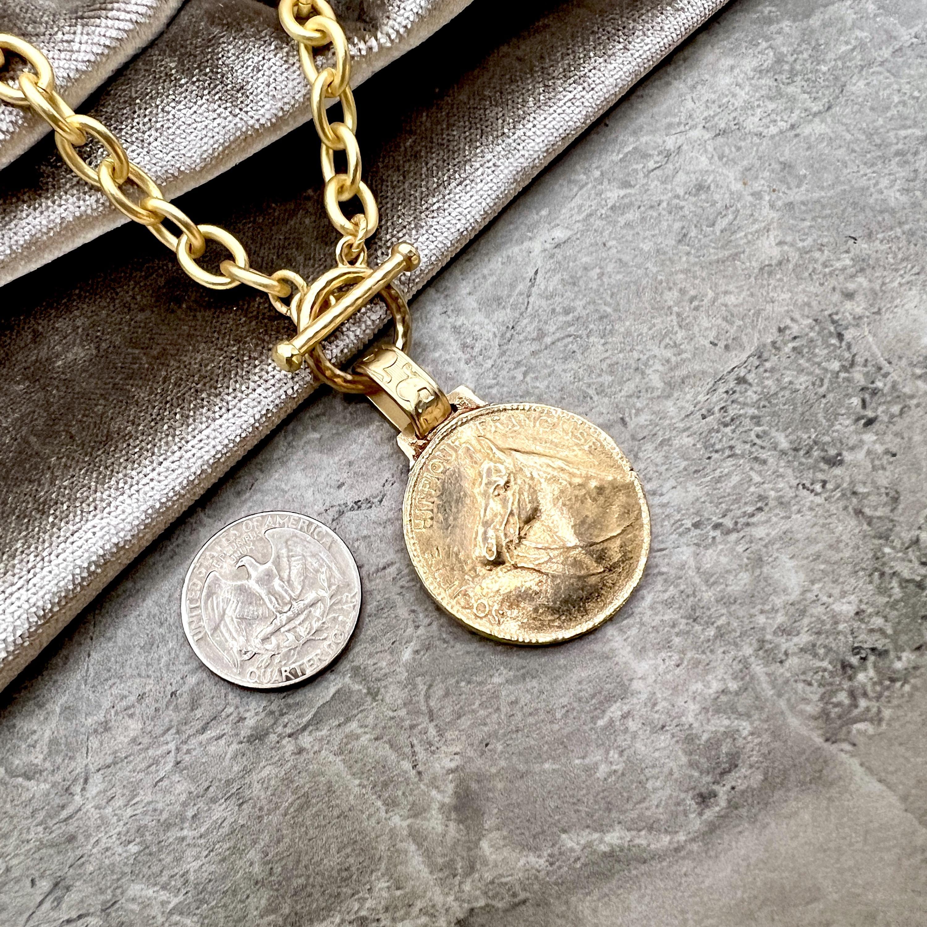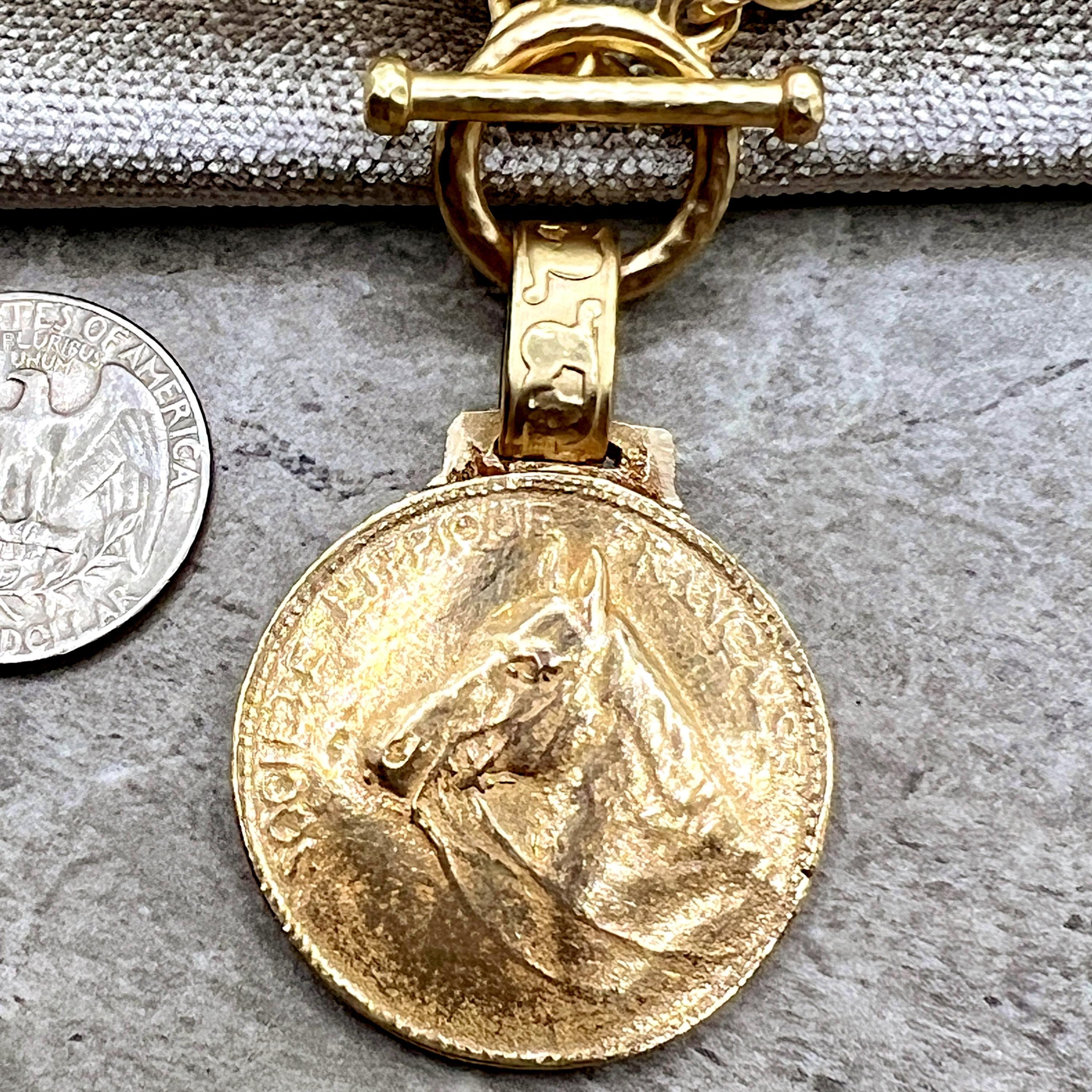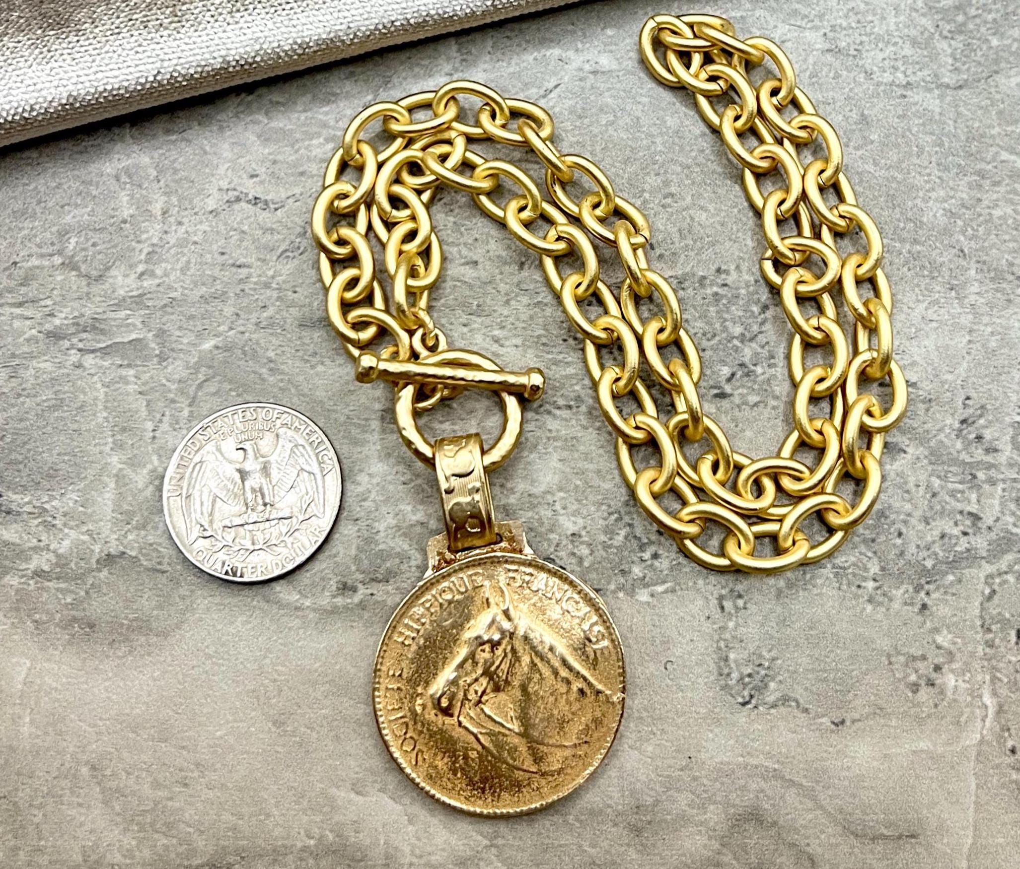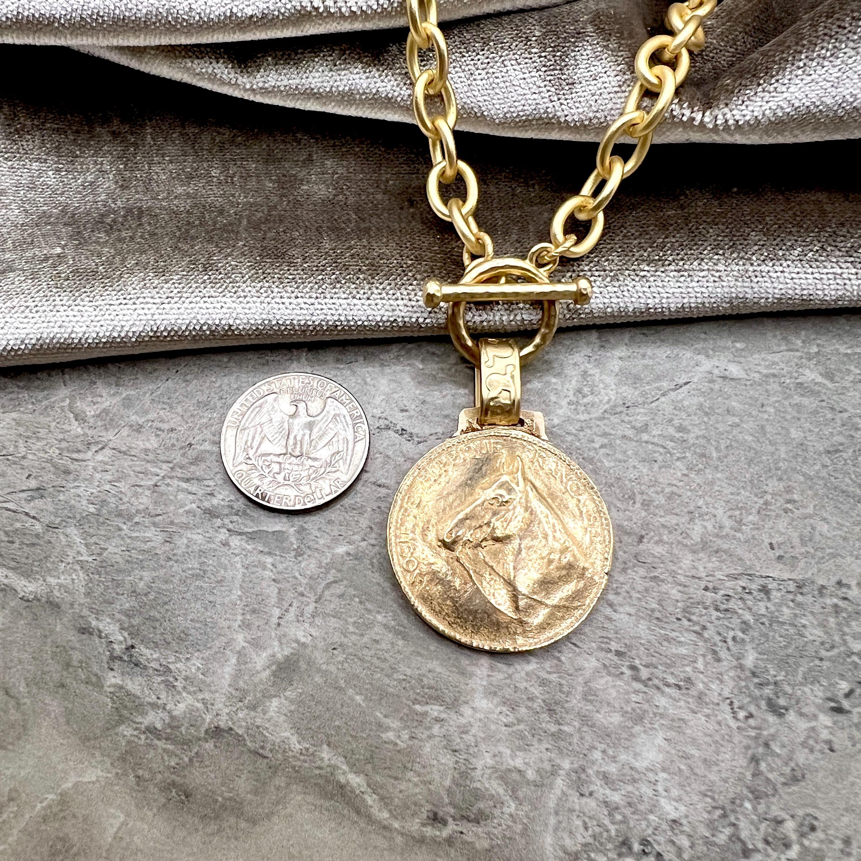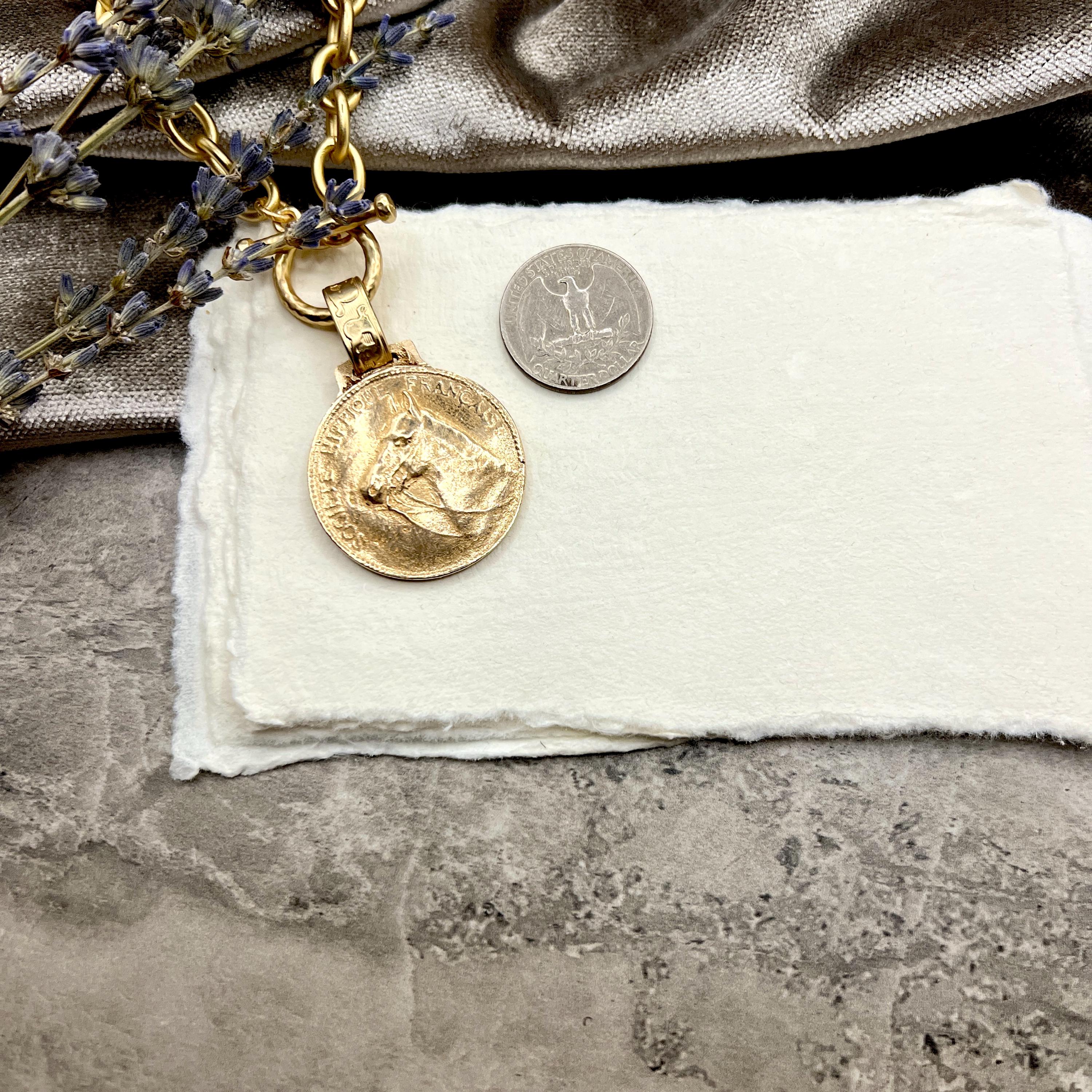 This Antique French Horse Medal Necklace is a bold, handcrafted statement necklace inspired by early 1900s equestrian medals from France. It would make the most treasured gift for a horse lover! The piece features a detailed horse portrait medal inscribed “Société Hippique Française”, faithfully replicated in solid bronze clay and finished by hand in my studio.